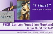 03/02/2015 We seek God. We thirst for God who alone gives meaning to our lives. Special invitation to single Catholic women aged 18-35 years who would like to take time during Lent to discern God’s call to the Religious Life as a Franciscan Sister. Date: Friday 27 February, 6pm till Sunday 1 March 2015, 4pm. Venue: [...]